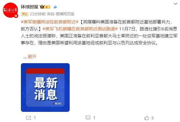 据环球时报:11月7日,路透社援引6名消息人士的说法报道称,美国正准备在叙利亚首都大马士革附近的一处空军基地建立军事存在,理由是美国希望利用该基地促成叙利亚与以色列达成安全协议。