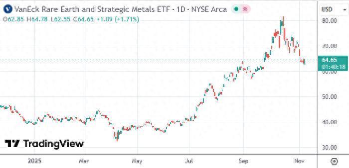 年初至今,VanEck稀土元素与战略金属ETF(股票代码:REMX)已累计上涨60%,吸引了不少散户参与。