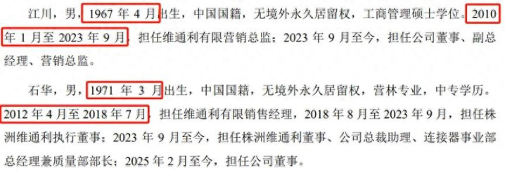 这里面比较有意思的是,针对“具有电连接行业研发、销售、生产、管理经验的”江川,还有元老级销售人士的石华,在他们入职到维通利之前的职业经历,维通利为什么不做披露?如此讳莫如深的背后,又有哪些不便提及、不愿被人所知的历史和隐情?