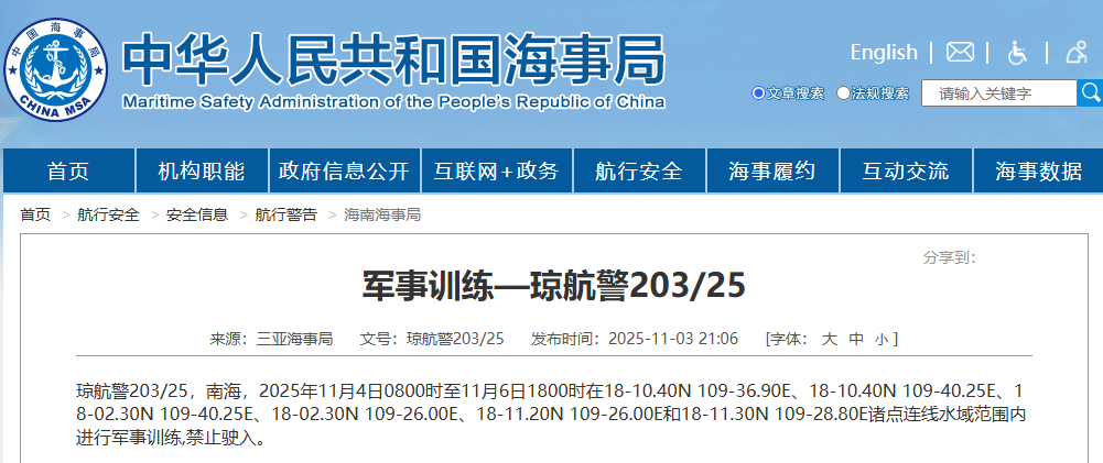 三亚海事局刚刚发布了一则禁航公告,宣布解放军将于5日在南海部分海域进行军事训练,而从给出的坐标点看,这个训练区不在南海深处,就在三亚沿海地区。考虑到中国第三艘航母福建舰早已抵达了三亚附近海域,做入列前的最后准备工作,我们有理由猜测,此次中国在三亚沿海划出禁航区,意味着福建舰将于明天正式入列。福建舰没有按照外界此前的猜测,在国庆节等时间点入列,一方面是因为刷号等准备工作需要时间,一方面是因为入列仪式需要一个还可以的天气,而从目前的天气预报来看,5日确实是一个难得的晴天,虽然仍旧可能有云,但大概率没有雨水。反观5日前后的几天时间,三亚均可能有雨。而随着福建舰的入列,中国海军也将正式进入三航母时代,这无疑对于解放军的海军建设有着特殊的意义。多说一句,美军的“尼米兹”号在摔了两架飞机后仍旧赖在南海不走,现在处于黄岩岛东南方向海域活动,解放军应该是出动了055等舰船前往应对。美军航母在这里活动,无疑是在给菲律宾人撑腰,继续搅动南海局势,在此情况下,福建舰的入列无疑是对美军行动的一次有力回应,这应该足以让菲律宾等国意识到中国海军才是南海最强的那支海上力量。
